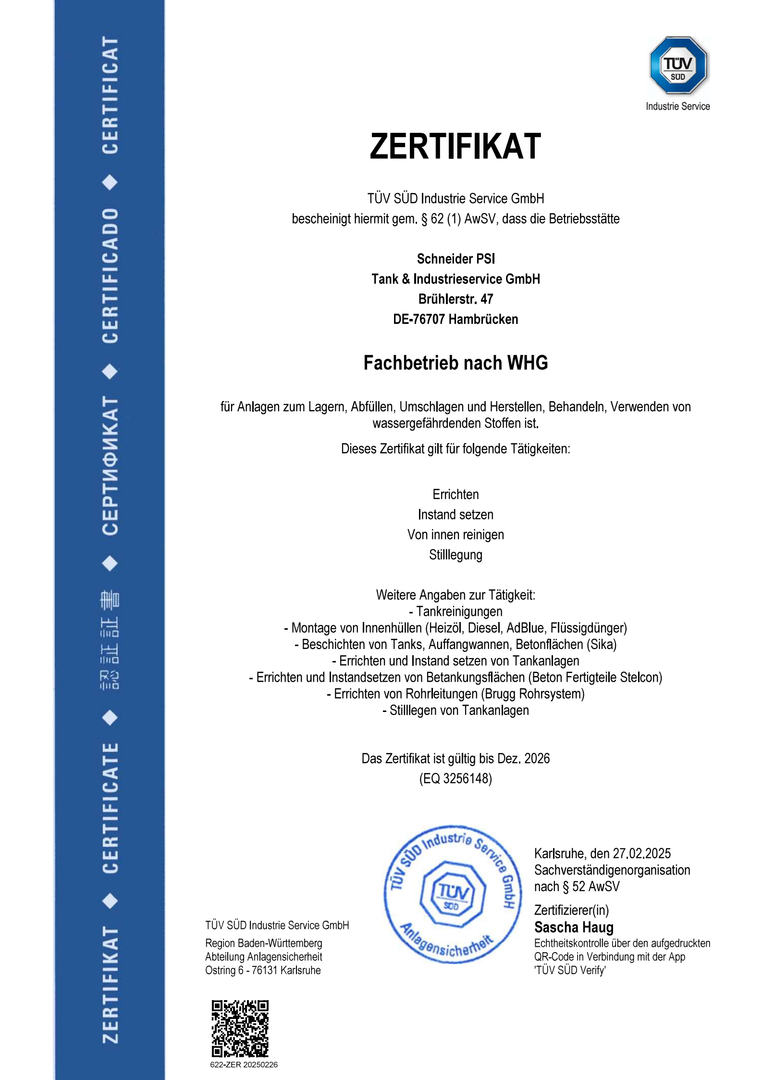 Willkommen bei Fa. Schneider PSI Tank- und Industrieservice GmbH aus Hambrücken!